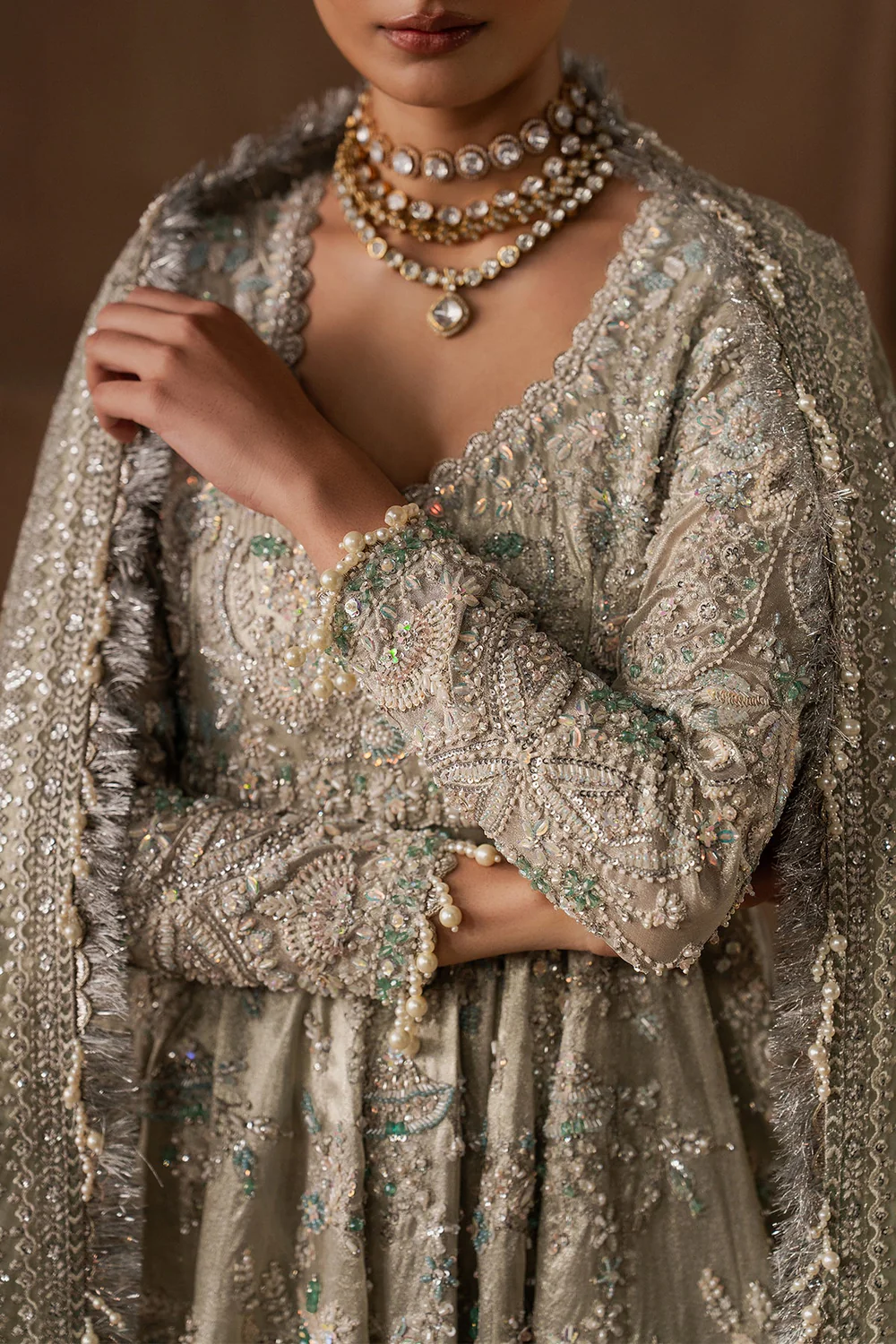 Exact embellishments such as laces are not provided by the designers as shown in the image for the unstitched versions, however we make every effort to closely match and add them to your stitched orders. To clarify, tassels and laces are not provided with the unstitched versions but will be added to stitched orders.