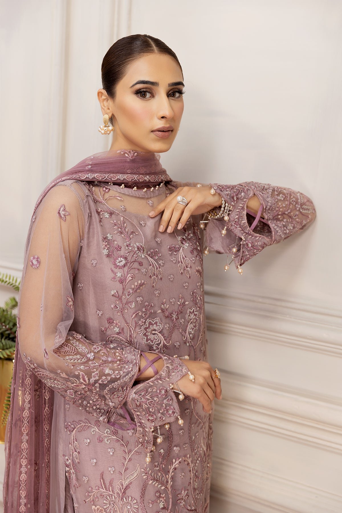 Embroidered net sleeves