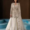 OFF WHITE ORGANZA 46″ HAND EMBELLISHED EMBROIDERED BACK NECK CREW 1 PC