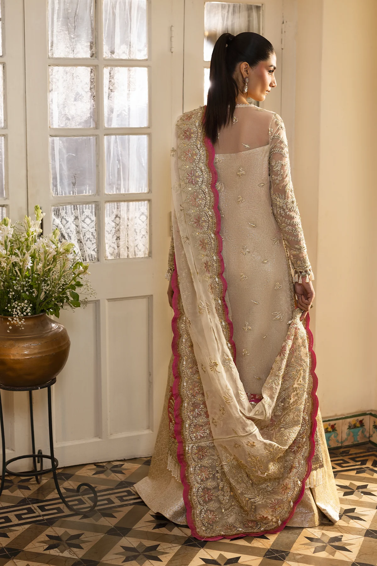 OFF WHITE ORGANZA EMBROIDERED SLEEVES 2 PCS